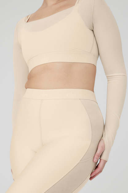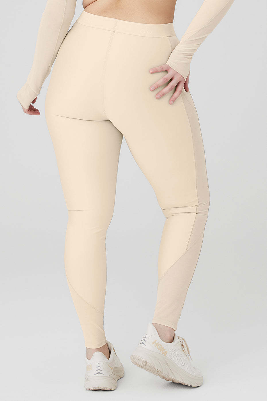 Perfect for doing pli谷s at the barre or heading from practice to pavement, the Airlift High-Waist Ballet Dream Legging nails the ballerina-inspired workout look like no other. It*s made from lightweight, performance-engineered Airlift fabric with a repeating Alo logo on the waistband and full mesh side panels from the waist down. Keep it en pointe with the matching top and cool trainers.