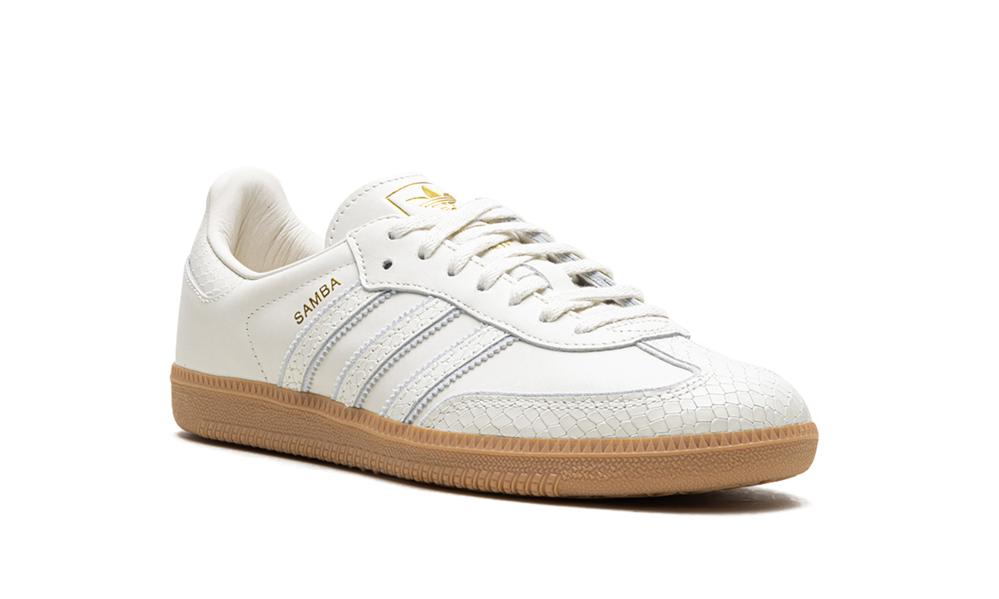 Step into a classic with the adithtdas Samba OG "Snakeskin White." This iconic silhouette blends heritage style with a unique snakeskin-textured upper. Featuring a clean design, premium materials, and signature Samba details, this sneaker offers both comfort and versatile appeal. Core White Gum